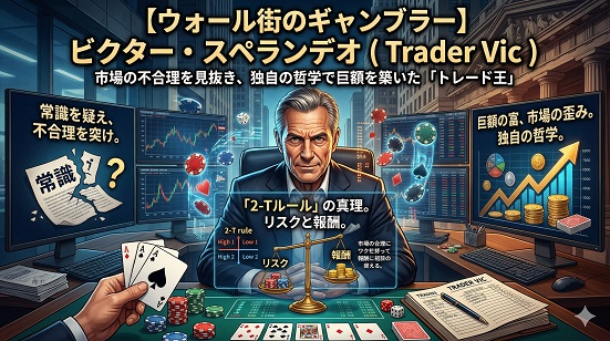 投資 【相場に魅入られた者たち:マーケットの狂気と栄光】第16回:ウォール街のギャンブラー、ビクター・スペランデオ〜確率と期待値に冷徹に賭ける「ポーカーの勝負師」〜 2026年4月5日 kan777777 今日も脳内会議中。